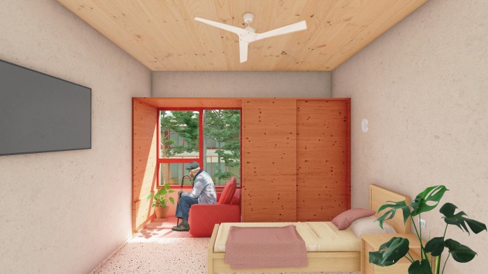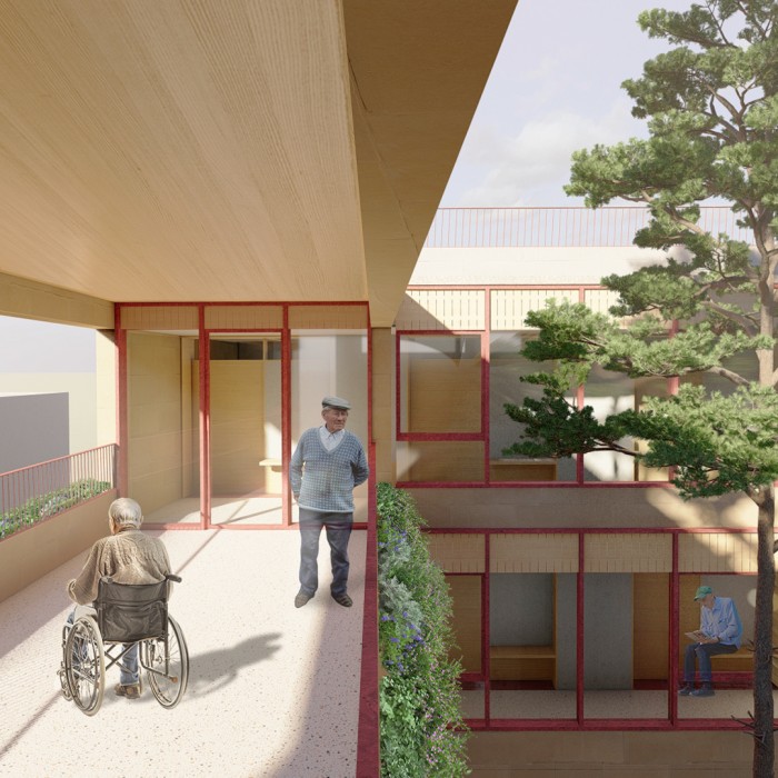 Queremos alejarnos de la idea preconcebida de residencia-hospital y profundizar más en la idea de residencia-hogar. Alejarnos de los espacios asépticos sanitarios y desarrollar ambientes (materialidad, espacio y relaciones) que recuerden más a casa.