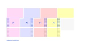 Esta división y reparto equitativo, propicia una dislocación en sección y fachada, lo que favorece la aparición de dobles alturas que generan conexiones visuales y espaciales interesantes en el interior de la vivienda.